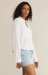 This cropped collared button-up top is crafted from lightweight double gauze fabric for an effortlessly relaxed fit. Finished with chest pockets and an airy feel, it’s a summer staple with a playful twist.