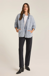 Stay cozy while looking your best with this new quilted jacket featuring a flattering curved hem detail. Crafted from midweight knit denim French terry with long sleeves, a collared neckline, zip front, and convenient welt pockets, it's the perfect layering piece for any casual outing.