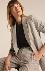Elevate your everyday style with this pinstriped high-rise pant, designed to create a sleek, elongated silhouette. Featuring a full length cut, button fly with zip closure, and handy side seam pockets, they blend classic sophistication with modern functionality.