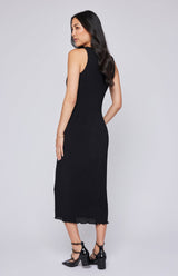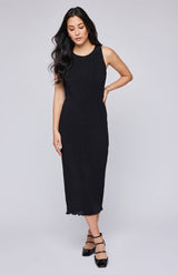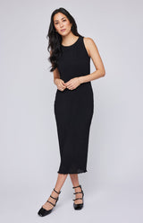 The Joanna dress is made of a plissé fabric with a delicate crinkled effect. Features include a lettuce hem detail and lining for ease of wear.