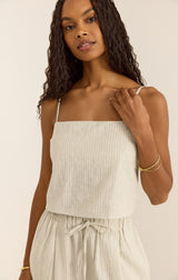 This striped linen tank is your elevated option for warm, sunny days. Slightly cropped, it hits above the waist, features a flattering straight neckline and will get all the attention.