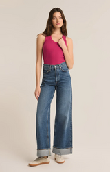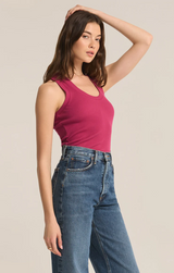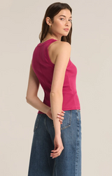 Our Sirena Rib Tank is made in our Premium Feather Rib fabric. We love this fitted tank tucked or untucked and the white option is semi-sheer.