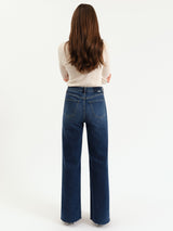 The cool girl jean, Far Out is a modern silhouette with twisted seams across the fit to give the appearance of longer legs. In a waist defining high rise, this wide leg is constructed in our "hug" denim that hugs your body, but has just enough weight to keep a structured fit.