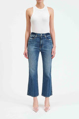 A structured flare with a tailored front crease, this is the ultimate day-to-night fit. The ankle length jean is made using our "Tough Love" denim, which makes every pair look like an authentic vintage fit - it's mostly rigid but yields to your body in all the right ways.