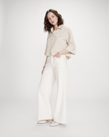 The VOICE striped shirt features a short, straight cut. The 3/4 sleeves end with wide cuffs. The classic shirt collar and the flap pockets on the chest offer a modern reinterpretation of the traditional work shirt. The vertical stripes visually elongate the silhouette. The front button fastening on the VOICE cropped shirt as well as the back pleat subtly structure the silhouette.
