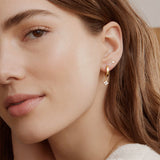 Our Merveilles Hoops are the cutest way to accessorize. These lightweight huggies adorned with a flower pendant made of cubic zirconias will be your go-to all season long. Dainty and sparkly, what more could you wish for?