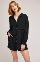The Portia button-down is made of a linen blend for an effortless look and feel. Wear it as is or worn open with the Finley pant.