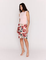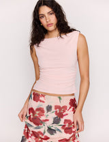 The Amelia Pink Boat Neck Ruched Top is made for sunset moments. Designed in a soft stretch pink with a boat neckline that falls to a romantic cowl back. Ruched for comfort, this piece falls to a neat hip length.