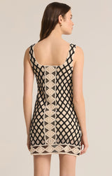 This might just be your new favorite mini, with its flattering scoop neck and bold crochet pattern. Bra friendly and lined, this fitted dress will turn heads while keeping you comfortable no matter where you wear it.