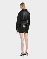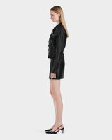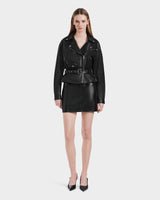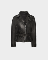 Meet ARIELLE by RUDSAK, a standout relaxed fit biker jackets that seamlessly combines style and comfort. With a dropped shoulder and a distinctive notch collar adorned with snaps, it exudes a laid-back yet chic vibe. Crafted from premium lamb leather, this jacket features a peplum silhouette for a touch of feminine flair. The inclusion of a zip waist pocket and leather belt loops adds both practicality and edge, while the removable waist belt ensures a customizable fit. Zip sleeve vents provide extra arm room, making ARIELLE a versatile and fashion-forward choice for any occasion.