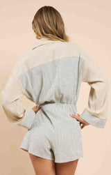 IN THE CLOUDS STRIPED CONTRAST ROMPER