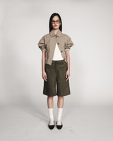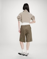 Made from faux suede fabric, the straight VACANZA bermuda shorts are a modern and elegant piece. The straight cut and clean lines create a simple and minimalist silhouette. The VACANZA suede bermuda shorts feature side pockets, faux welt pockets at the back, and belt loops.