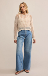 A laid-back favorite, this cropped crochet sweater features a breezy mesh knit, drop shoulders, and a casual roll neckline. The natural flax color gives a fresh, beachy feel to every outfit.
