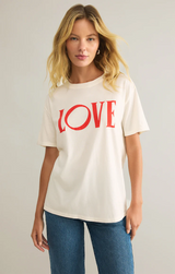 Perfect for Valentine's Day and beyond, this relaxed tee features a fun "love" screen print graphic on the front. It is made using our 100% cotton jersey fabric and pairs perfectly with your fave bottoms.