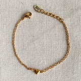 This dainty and super cute bracelet features a Gold Plated Stainless Steel chain and a little heart as a focal piece.
