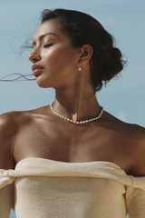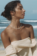 Introducing the Lagoon Necklace — Crafted from freshwater pearls and dainty beads, this playful necklace rests high on the neckline, adding an eye-catching touch to your everyday looks. Ideal for layering or wearing solo, it’s a classic you’ll want to wear on repeat this season and beyond.