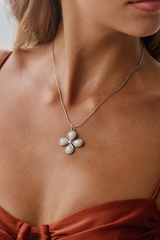 Featuring a flower-shaped pendant adorned with faux pearl detailing on a simple, elegant chain, Fleur brings a soft, romantic touch to any look. Style it with the Fleur Earrings for an effortless match.