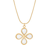 Featuring a flower-shaped pendant adorned with faux pearl detailing on a simple, elegant chain, Fleur brings a soft, romantic touch to any look. Style it with the Fleur Earrings for an effortless match.