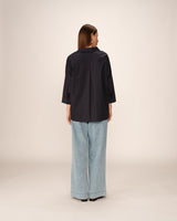 The PAVEL oversized shirt is crafted from cotton poplin and is part of our natural fiber range, «Un Brin de Vert». Its oversized cut and dropped shoulders create a modern and elegant look. The piece is enhanced with the G&M monogram embroidered at the bottom. Straight long sleeves and a classic collar add a touch of sophistication, while the V-neckline slit brings a subtle note of femininity. The clean and minimalist lines of this shirt evoke a chic and relaxed vibe.