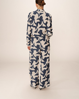 The bicolor geometric print creates a contrast with the classic lines of the PAVOT wide leg trousers. Made from natural fibers, the model is part of our 'Un Brin de Vert' collection. The straight cut and mid-rise elasticated waist with drawstring are designed to flatter every woman's curves. The PAVOT straight trousers feature Italian pockets and front pleat details.